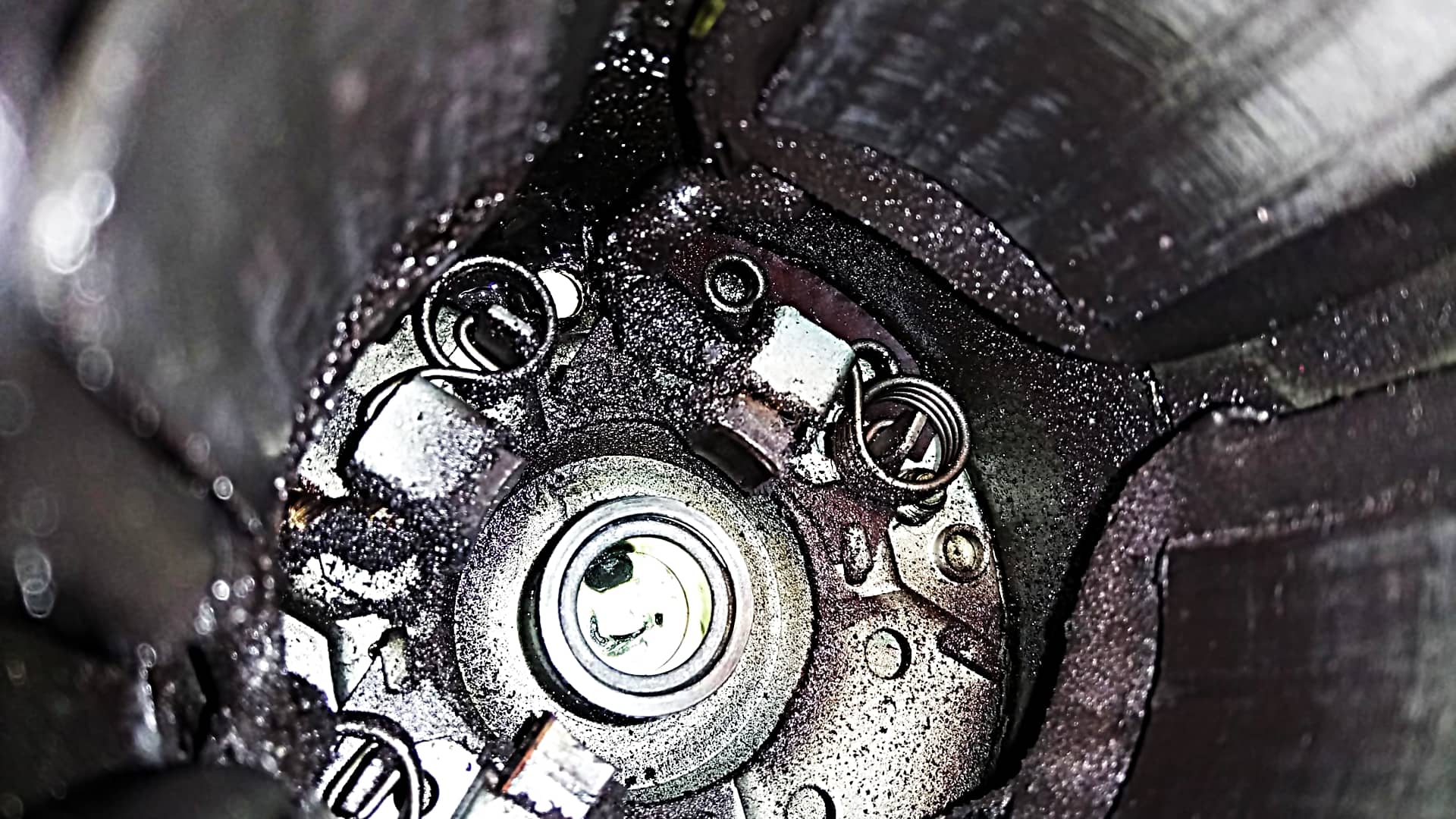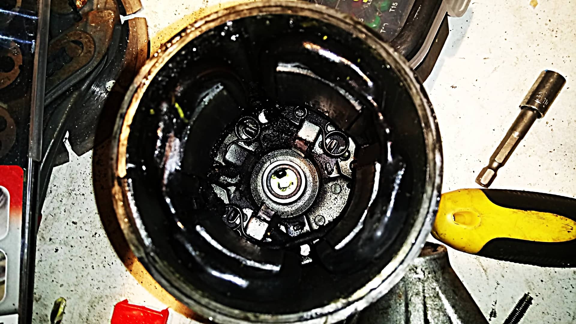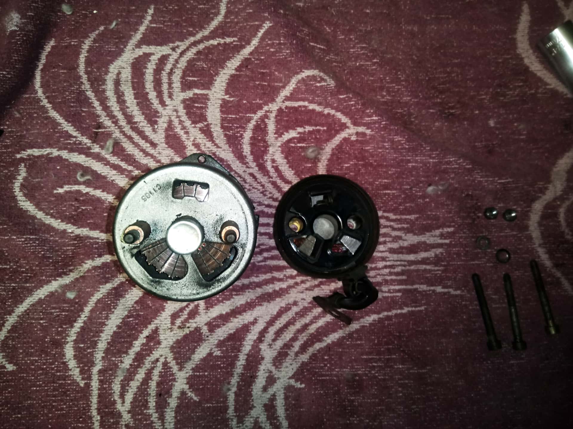 Pour le nettoyage, j’ai utilisé du dégrippant / dégraissant, un petit morceau de papier de verre grain fin (160) et le compresseur pour souffler et sécher.